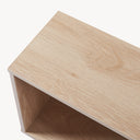 De verspringend geplaatste opbergvakken maken comfortabel gebruik op verschillende hoogtes mogelijk. De extra legvlakken naast de vakken zorgen voor aanvullende opbergruimte waardoor het meubel ook als staand rek kan worden gebruikt.