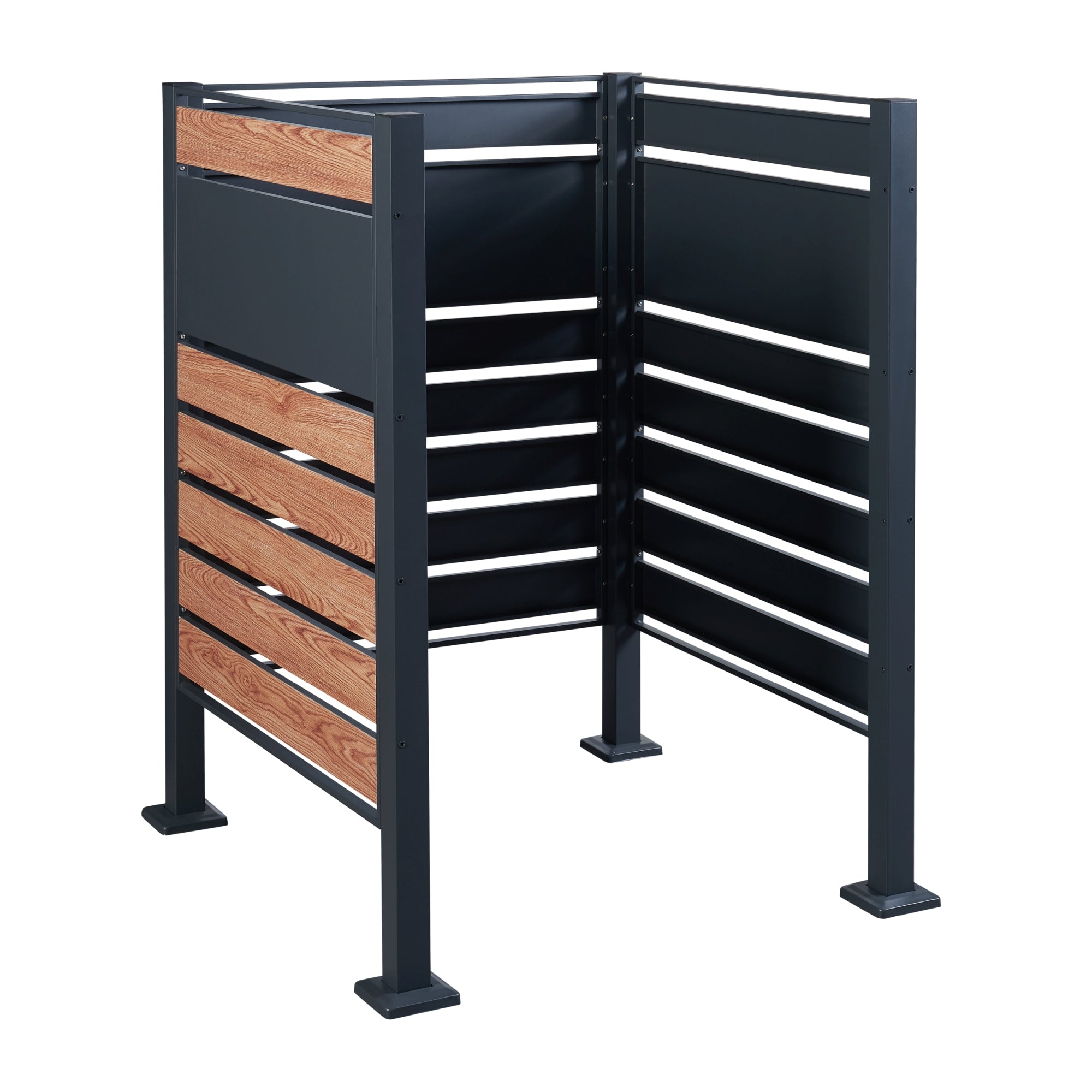 Onze containerberging biedt een elegante oplossing om je afvalbakken uit het zicht te houden. Dankzij de flexibele aansluitmogelijkheden is het vuilnisbakhek naar wens uit te breiden. Extra elementen kunnen eenvoudig naast elkaar, in een hoek of in een T-vorm worden geplaatst, zodat ze perfect bij je beschikbare ruimte passen.