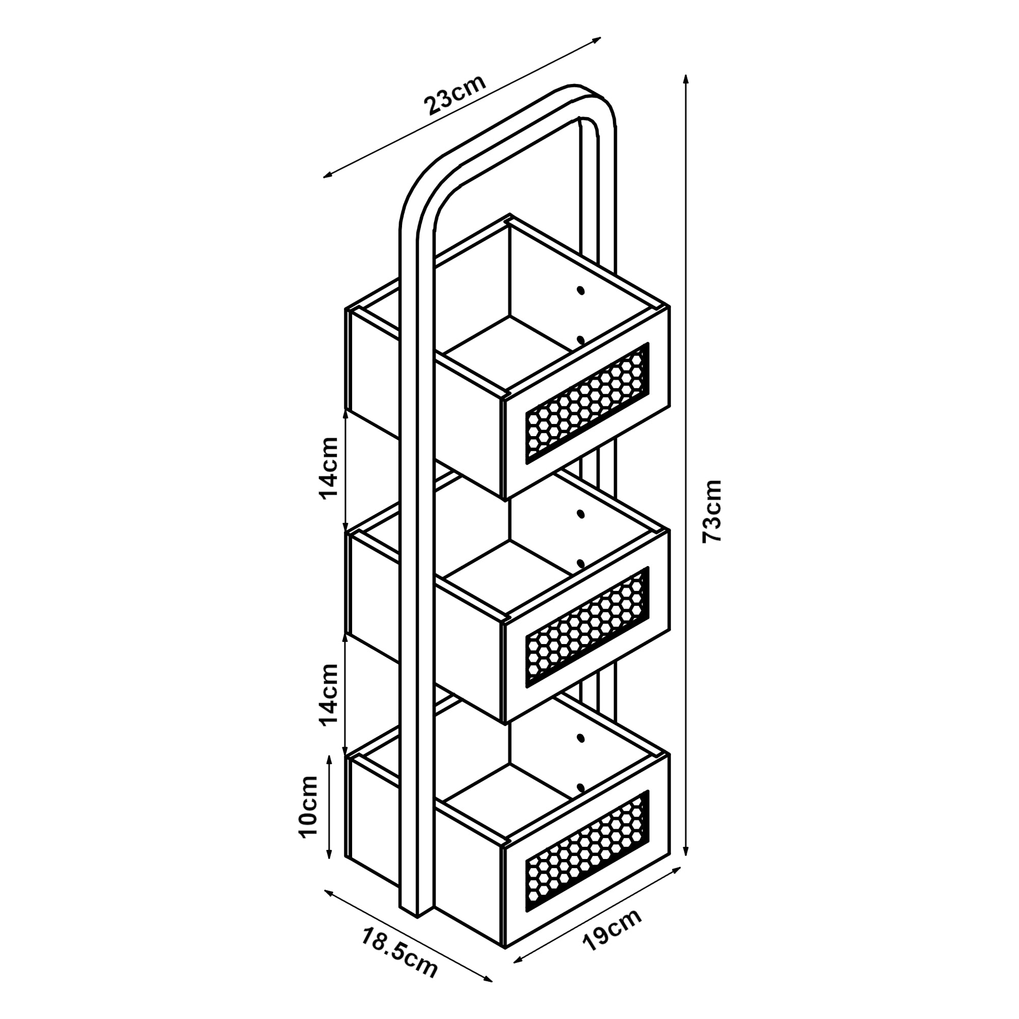 - Totaal (HxBxD): 73x23x18,5 cm