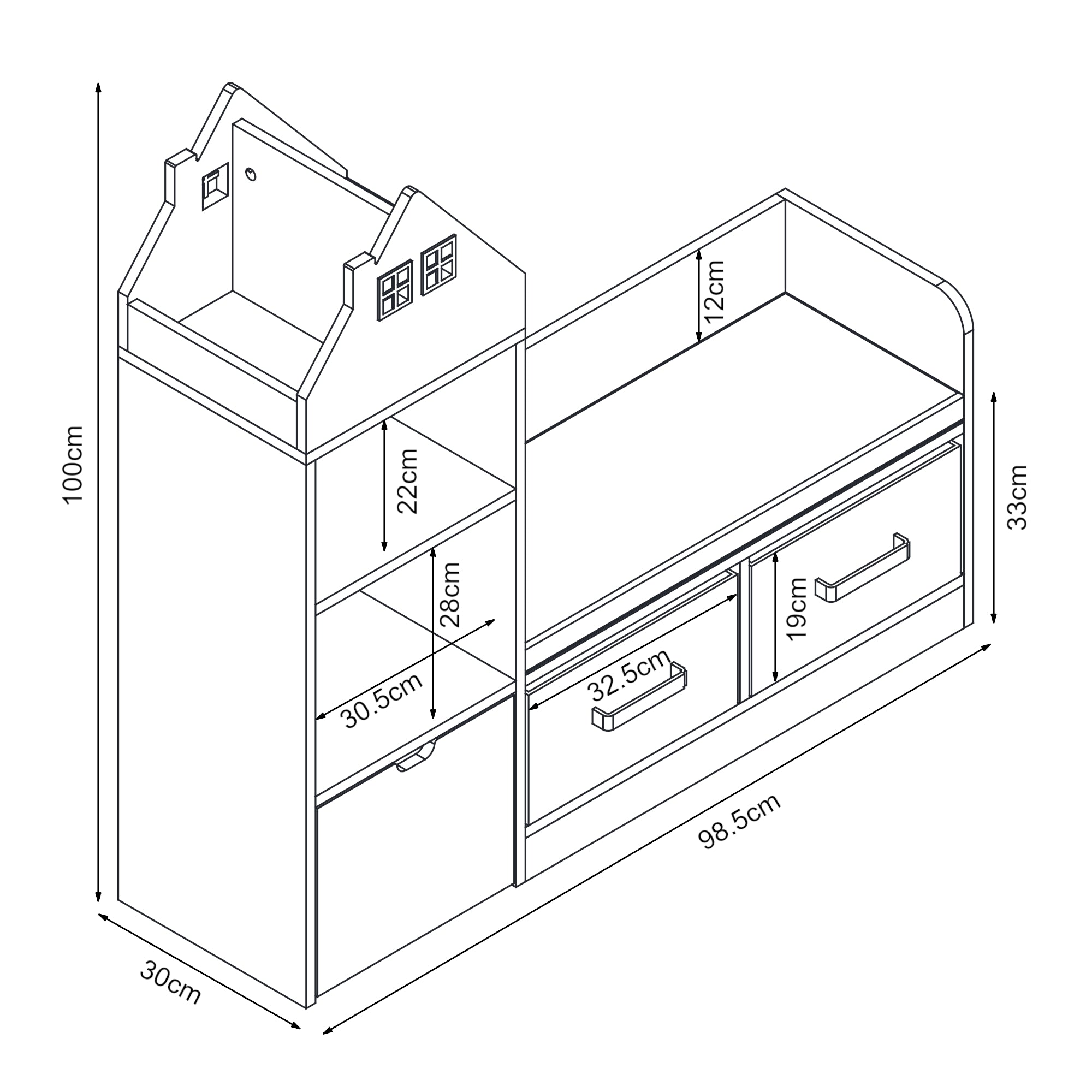 Totaal (HxBxD): 100x98,5x30 cm